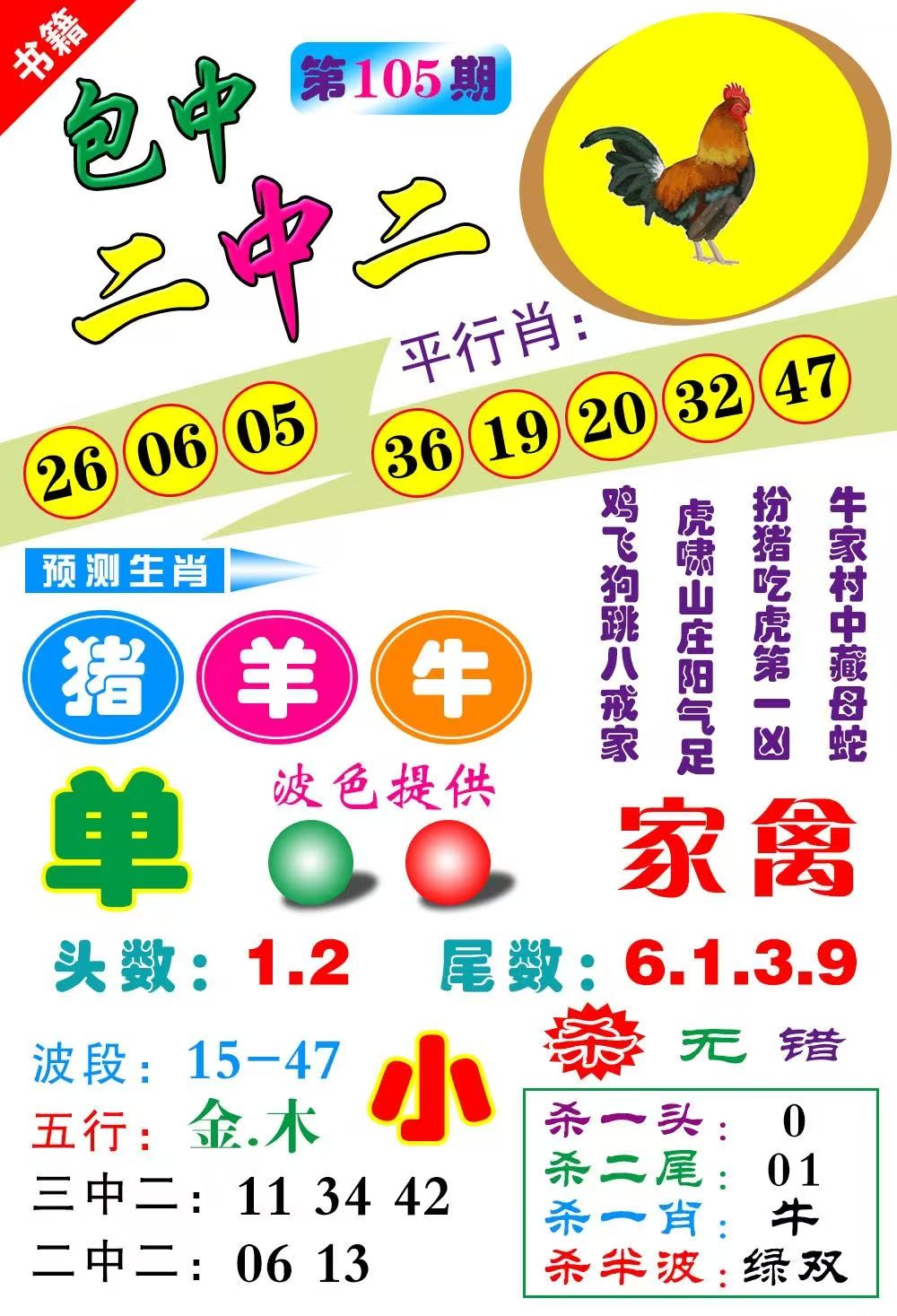 | 105期:必中㈡肖: 鸡羊 |